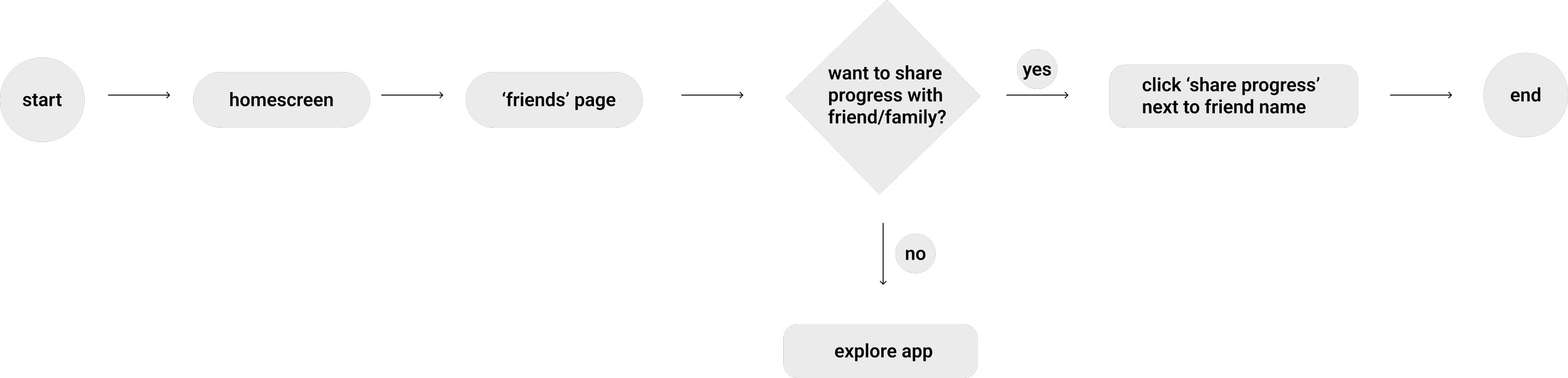Once I understood my user needs and behaviors, I created two user flows to help visualize the steps a user would take. These flows are to create sustained engagement, by being able to send invitations easily and share progress, these are more of a reason to stay on the app and use it.