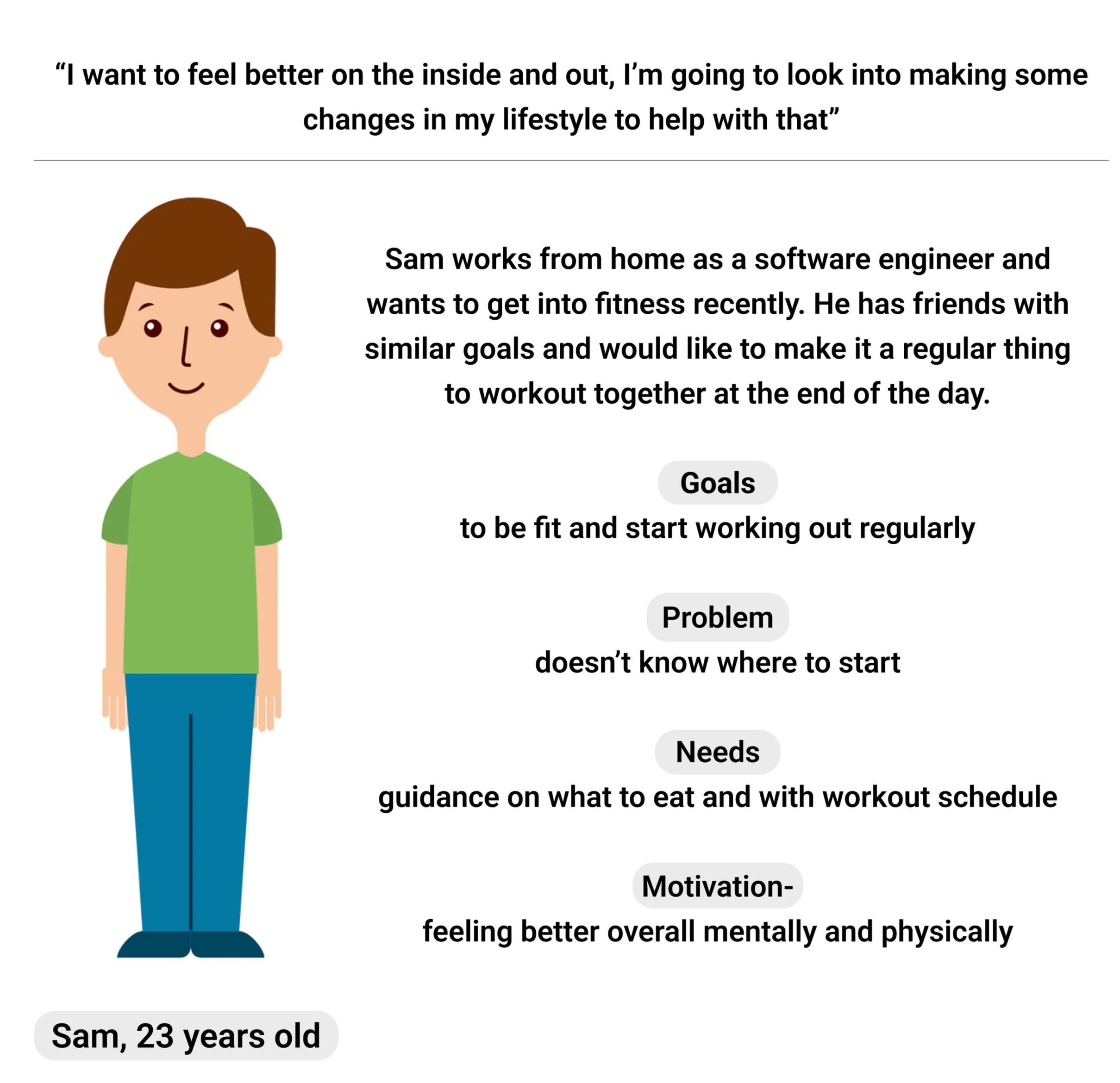 To condense all the information I gathered from interviews, I created a user persona that presents the type of person that would use a health/fitness app and an empathy map to showcase the results from my interviews as well as understand what my target audienceβs behaviors are.
