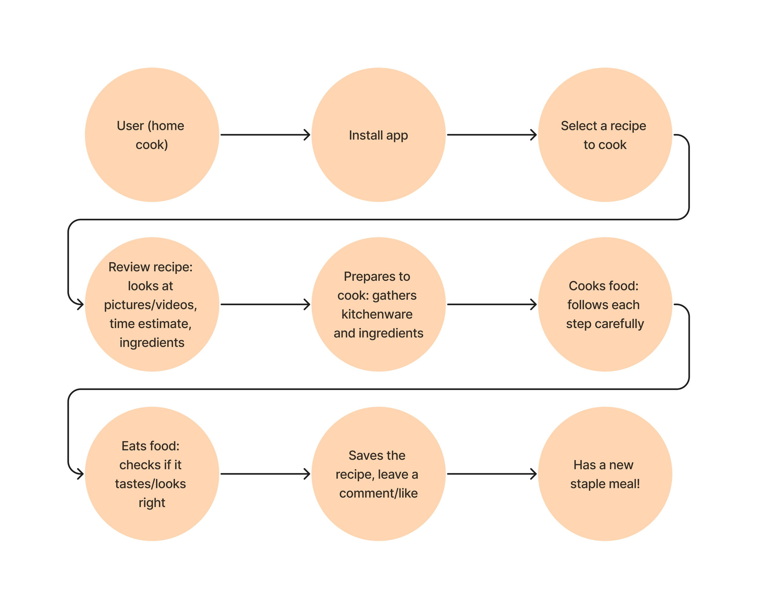 After reading the provided documentation, I created this end-to-end experience map: a likely path a user would take while using an app like Savr Recipes to cook a meal.