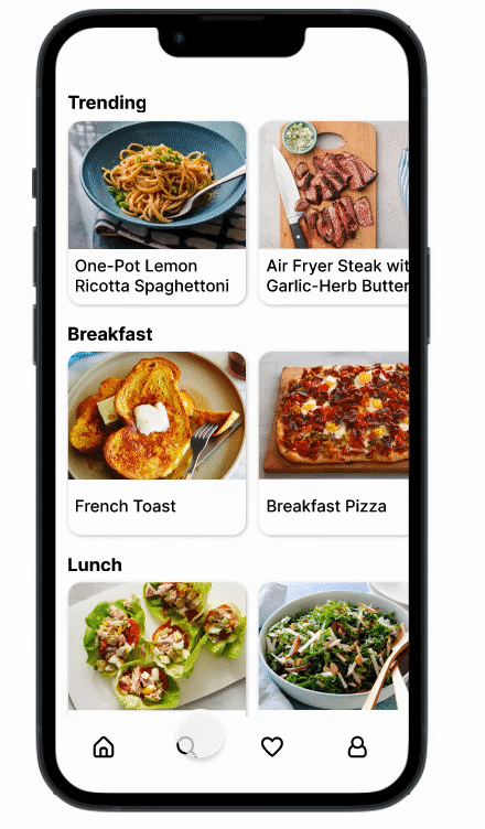 Task is to create a feature on Savr Recipes native mobile app