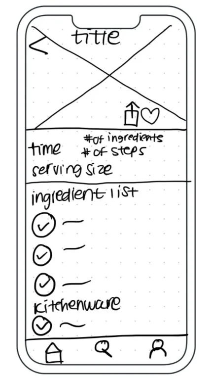 This was closest to what I wanted the final prototype to look like. This idea included the video tutorial, the basic information below it (time, # of ingredients and servings), and the steps listed below.